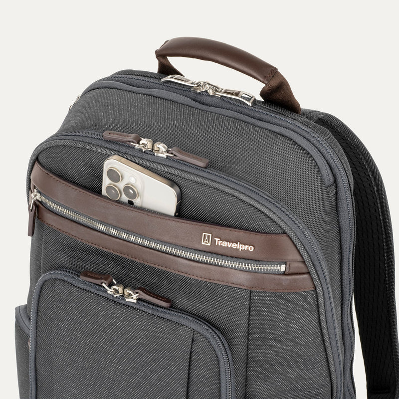 Mit dem eleganten, gut organisierten und strapazierfähigen Travelpro® Platinum® Elite Business Backpack wird das Geschäftliche zum Vergnügen. Dieser ideale Begleiter für Pendler trägt alles mit sich - zur Arbeit, ins Fitnessstudio, zum Einkaufen und sogar auf Reisen.