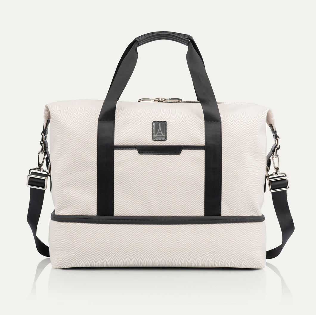 Prepare to fall in love with the Travelpro® x Travel + Leisure® Drop-Bottom Weekender—an impressively versatile bag that takes you everywhere in effortless style. With a removable lower section and zippered divider panel, this adaptable companion transforms from a drop-bottom bag to a spacious duffel or a compact carryall ideal for the gym or day trips.