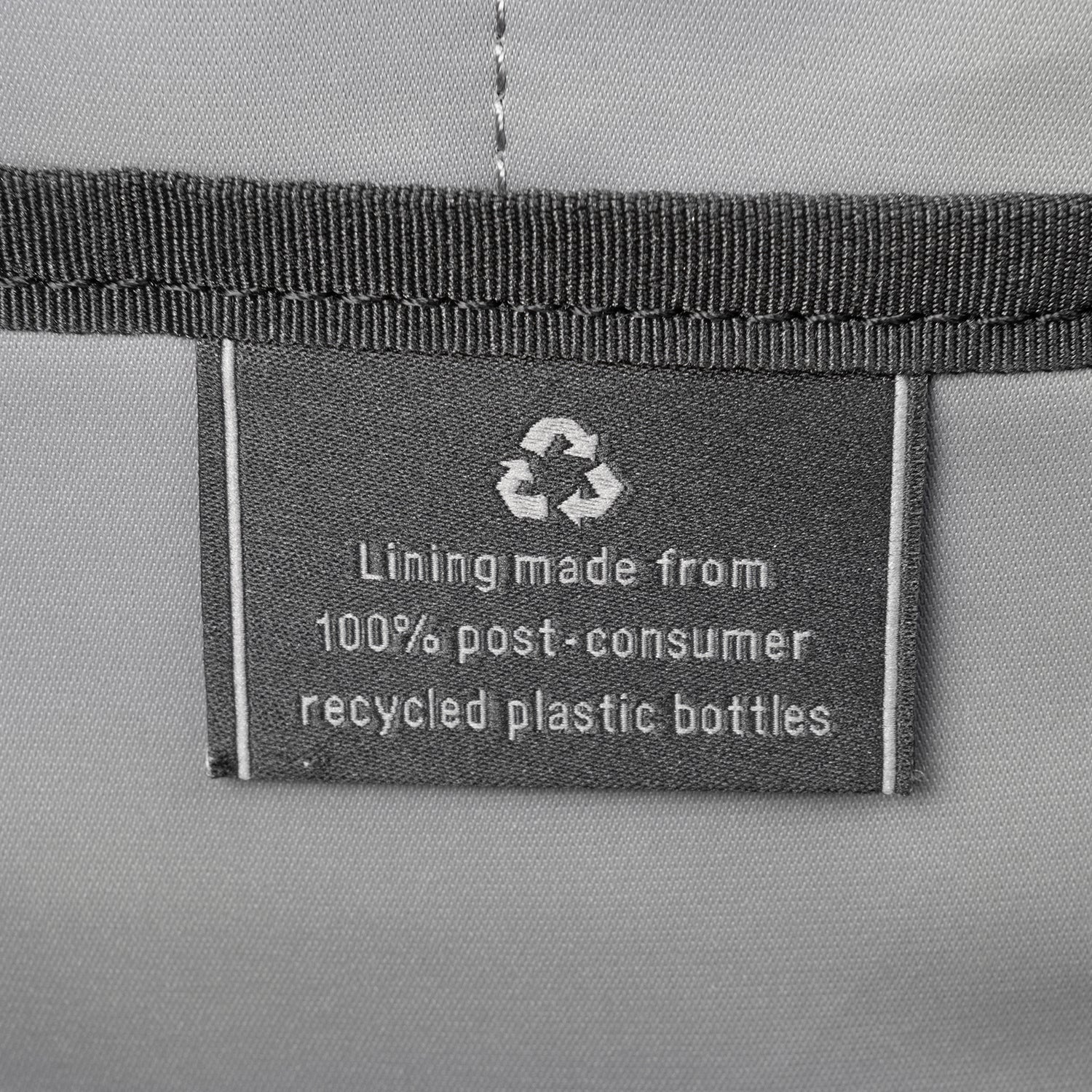 Constructed from 100% post-consumer recycled plastic bottles, the high-density ballistic ECOFAB™ exterior is coated with DuraGuard® to resist stains and abrasions. Inside, the ECOFAB™ lining with H2O guard helps keep contents clean and eco-friendly. When you need extra space, the zippered expansion offers up to 28% more capacity instantly.