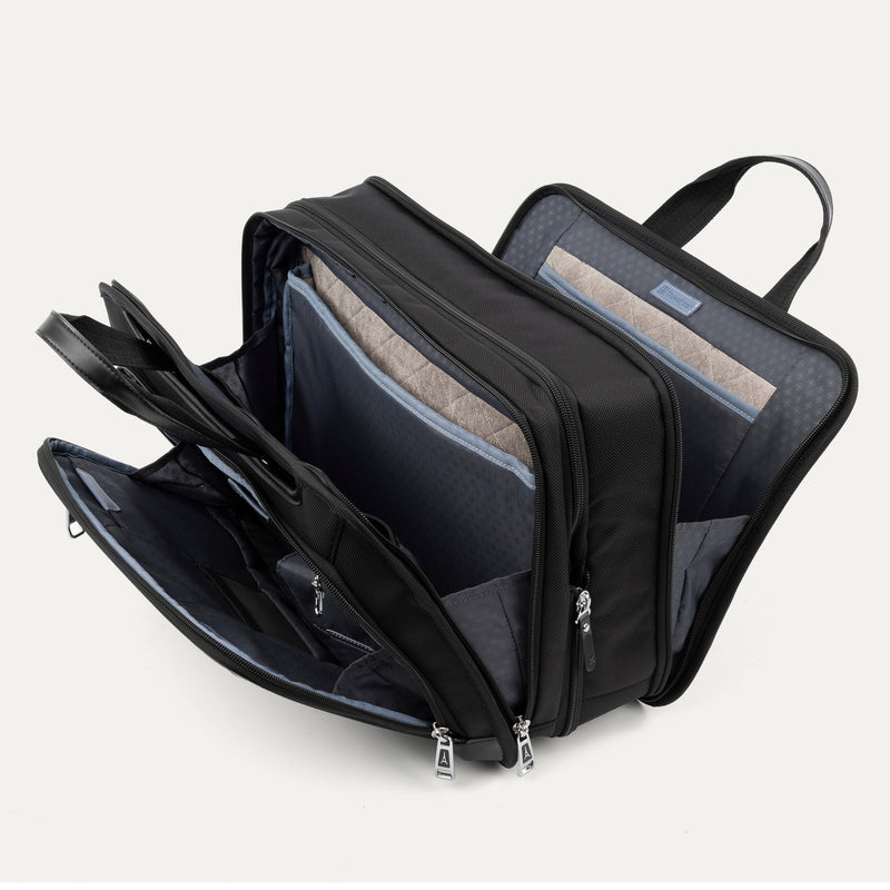 A business brief that adapts to your day. The Platinum® Elite Expandable Business Brief combines professional style with smart functionality, offering all the organisation and convenience you need for travel or daily commutes. A built-in expansion option provides extra capacity when needed—perfect for storing files, electronics or a light jacket. Genuine leather carry handles offer a premium feel, while the high-density nylon fabric resists stains and abrasions to maintain a sharp, polished look.