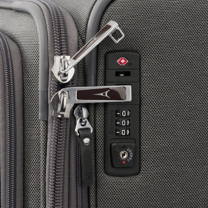 Integrated lock allows TSA authorities to safely unlock and lock suitcase for inspection when needed (default lock code is 0-0-0 to open).