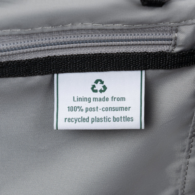 Interior hold down straps, water-resistant storage, and multiple accessory pockets offer packing flexibility while the ECOFAB™ interior lining with H2O guard is made from 100% post-consumer recycled plastic bottles (8.5 total bottles).