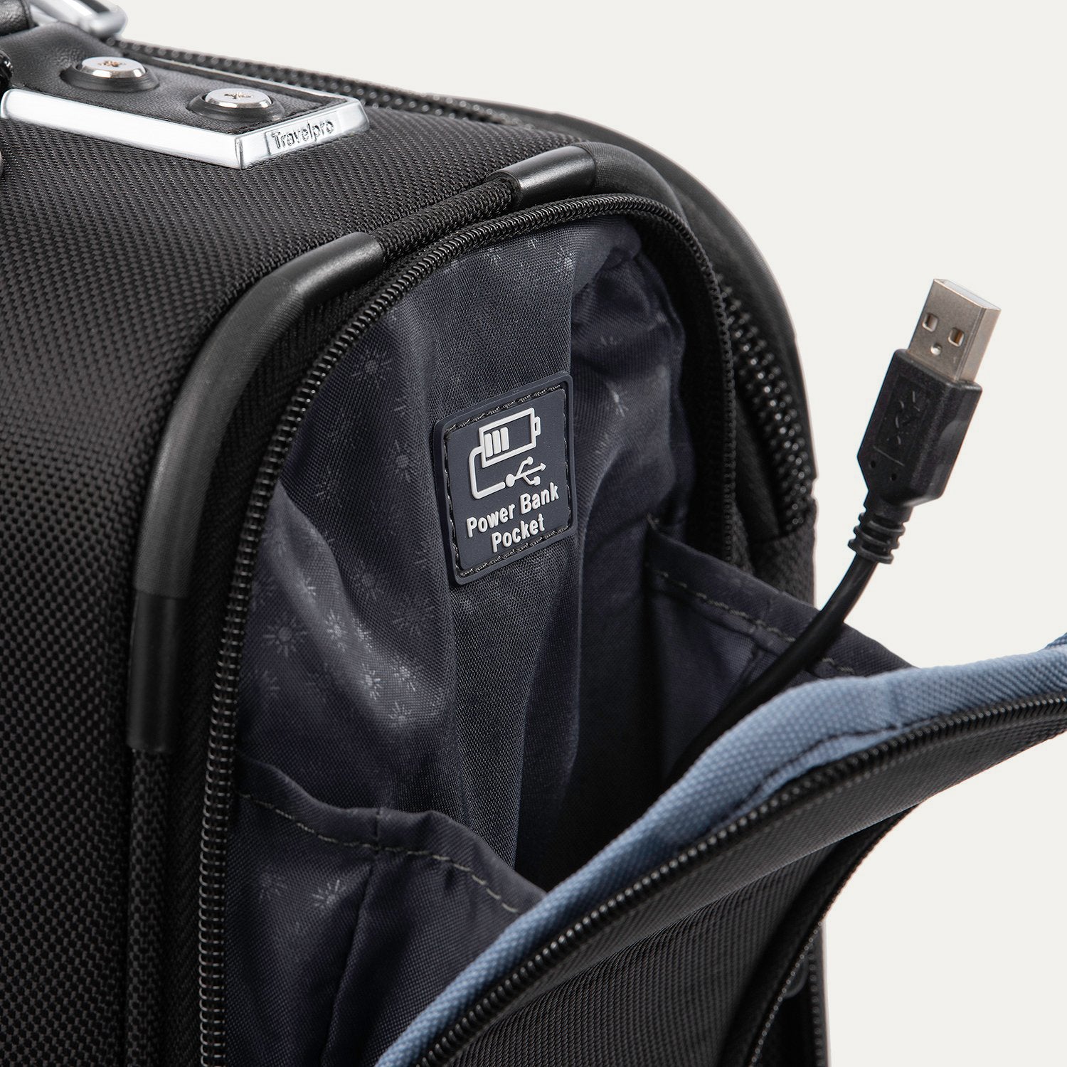 External USB port with dedicated power bank pocket meets FAA regulations for carry-on and checked baggage *Power bank not included.