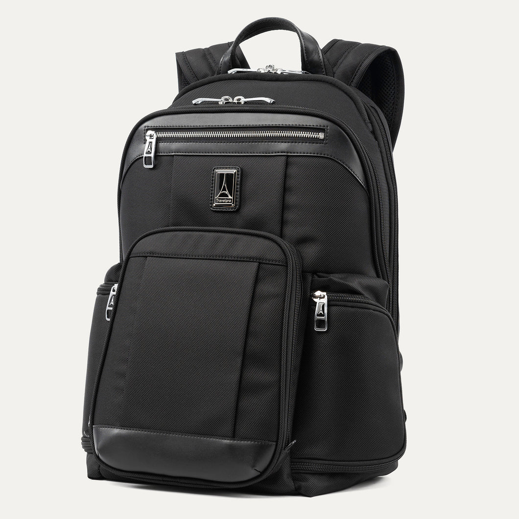 Stylish and highly functional on its own, this backpack also coordinates seamlessly with the Platinum® Elite luggage collection and includes a rear stacking strap that fits securely over the extension handle of any Travelpro® rolling suitcase. Backed by our 10-Year Warranty.