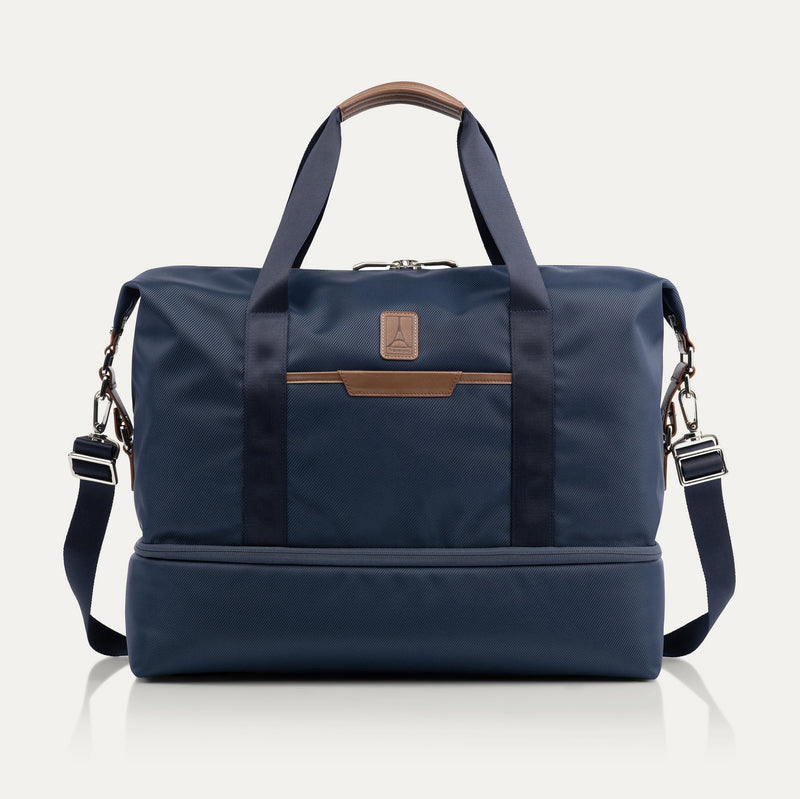 Maak je klaar om verliefd te worden op de Travelpro® x Travel + Leisure® Drop-Bottom Weekender - een indrukwekkend veelzijdige tas die je overal mee naartoe neemt in moeiteloze stijl. Dankzij het verwijderbare onderste gedeelte en het tussenschot met ritssluiting verandert deze aanpasbare metgezel van een drop-bottom tas in een ruime duffel of een compacte carryall, ideaal voor de sportschool of dagtripjes.